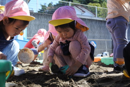 天候にも恵まれ、暖かい陽気の中で砂場あそびを楽しみました☺
